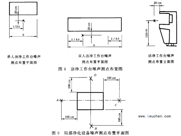 测点布置在洁净工作台横向的中心线上,均匀布置三点,取算术平均值作为洁净工作台的照度。其照度应达到2. 6中的规定。