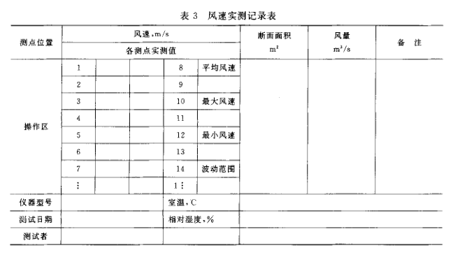 采用便携式热球电风速计或便携式热敏电阻恒温风速计测试,所选用的仪器其误差不大于被测量的士1o%,风速计应按说明书中的要求进行标定。